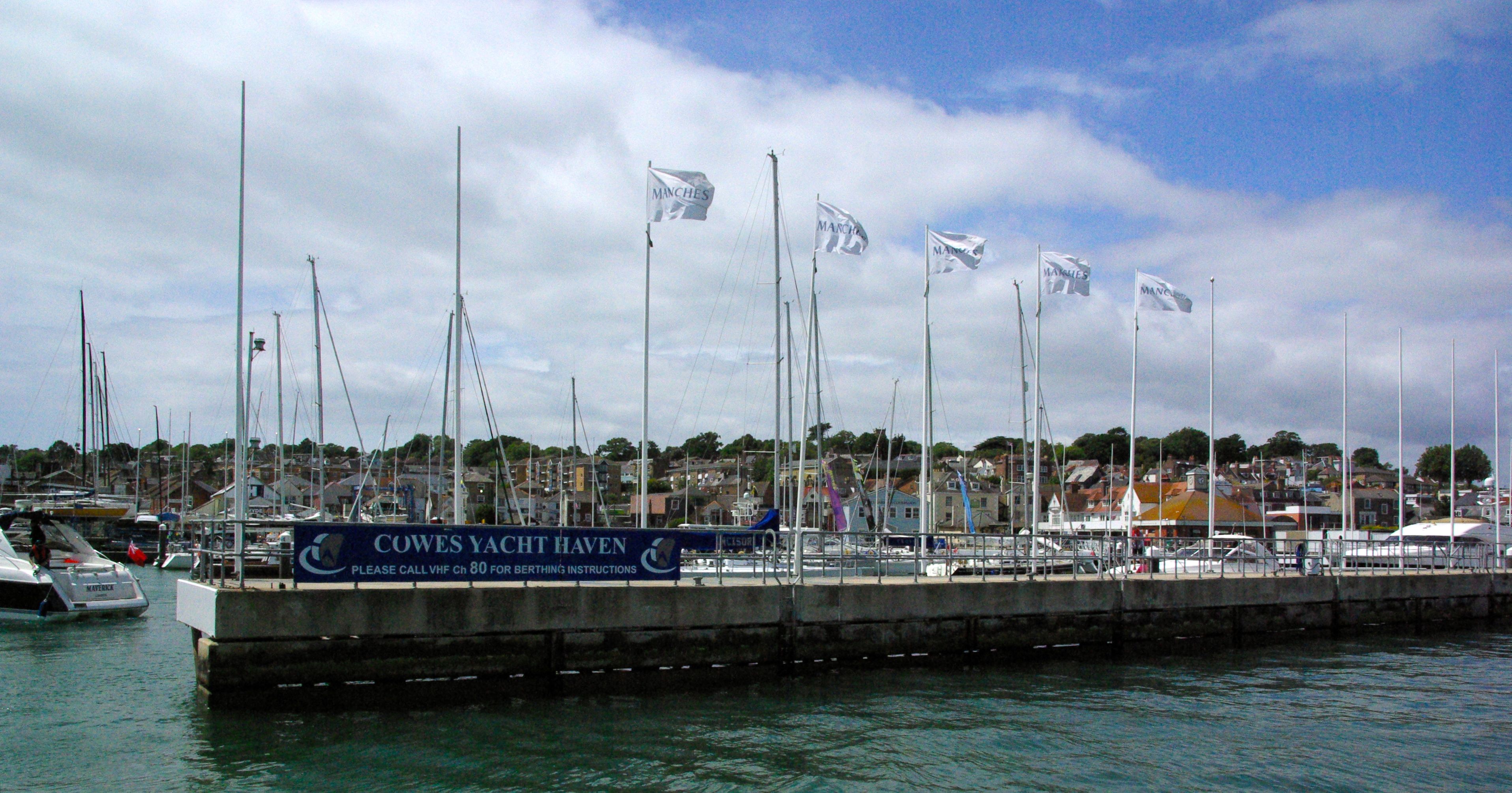 Det kändes litet högtidligt att segla på The Solent med kurs mot Isle of Wight med huvudorten Cowes. I den mån historiens vingslag gjorde sig påminda blev de dock bortspolade av ett häftigt störtregn strax innan vi kom fram. Cowes är en trivsam småstad präglad av segling och båtsport. Alla viktiga tillverkare av båttillbehör finns representerade och flera verkar på orten. Så fick vi till exempel möjlighet att diskutera utlösningsmekanismen på våra i våras köpta flytvästar med den tekniskt ansvarige, då vi gjorde ett spontanbesök på Spinlockfabriken i centrala Cowes.