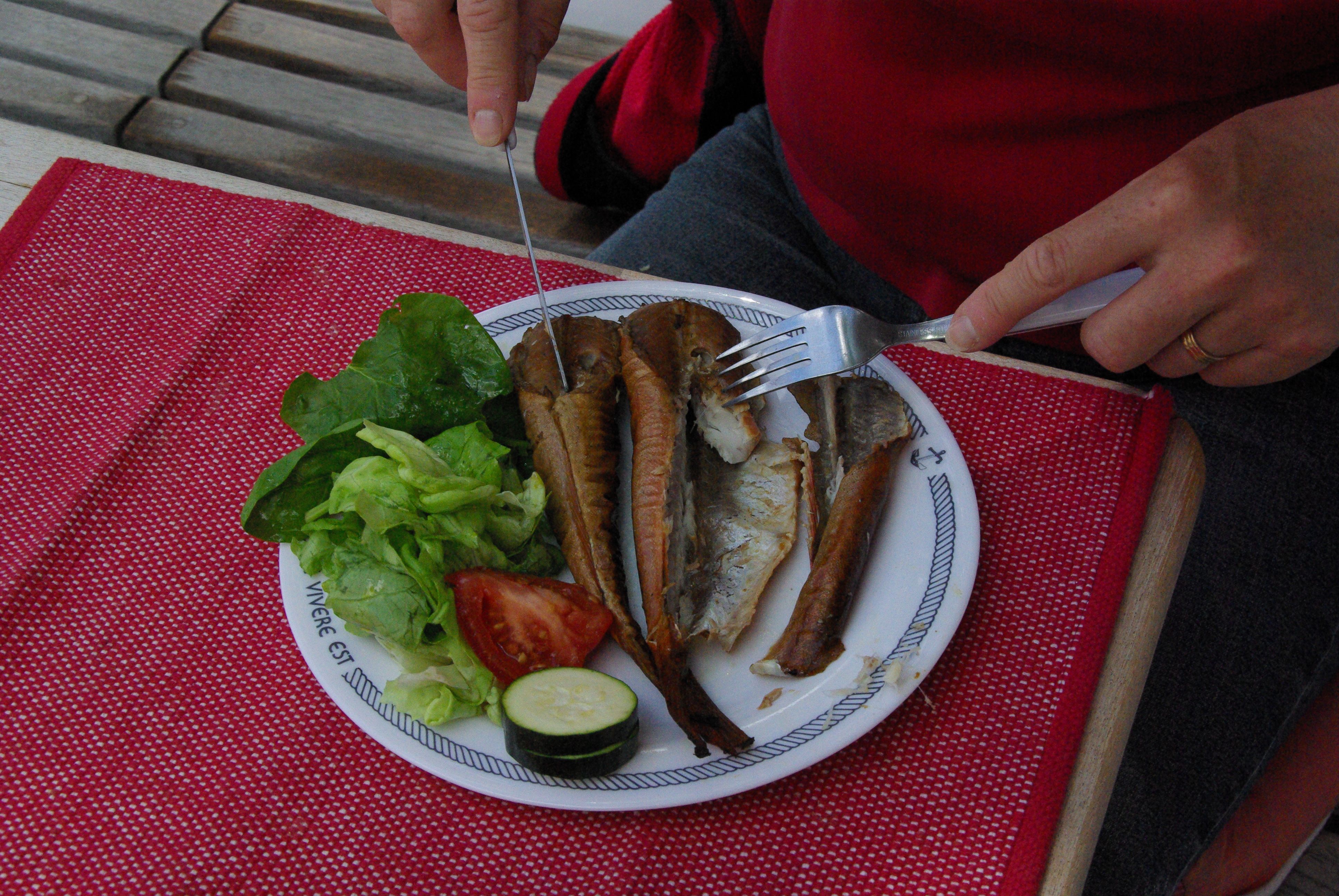 Tyvärr fick vi inte ligga kvar där vi hade förtöjt men upptäckte en fin långsidesplats längst in mellan bryggarmarna. På väg in hojtade en man på bryggan att vi skulle se upp för den tvärsgående strömmen. Vi gasade på och sladdade fint in på platsen – för att i nästa stund slås av frågan: ”Hur fasingen kommer vi härifrån?”. Vi hade helt klart missbedömt manöverutrymmet vid den annars fina platsen. Följande dag krånglade vi oss ur den penibla situationen vid slackvatten och stiltje klockan sex på morgonen med endast någon halvmeters marginal till övriga båtar. Innan vi kastade loss stod Svante och spottade i vattnet för att försäkra sig om att det faktiskt inte var någon ström på gång.