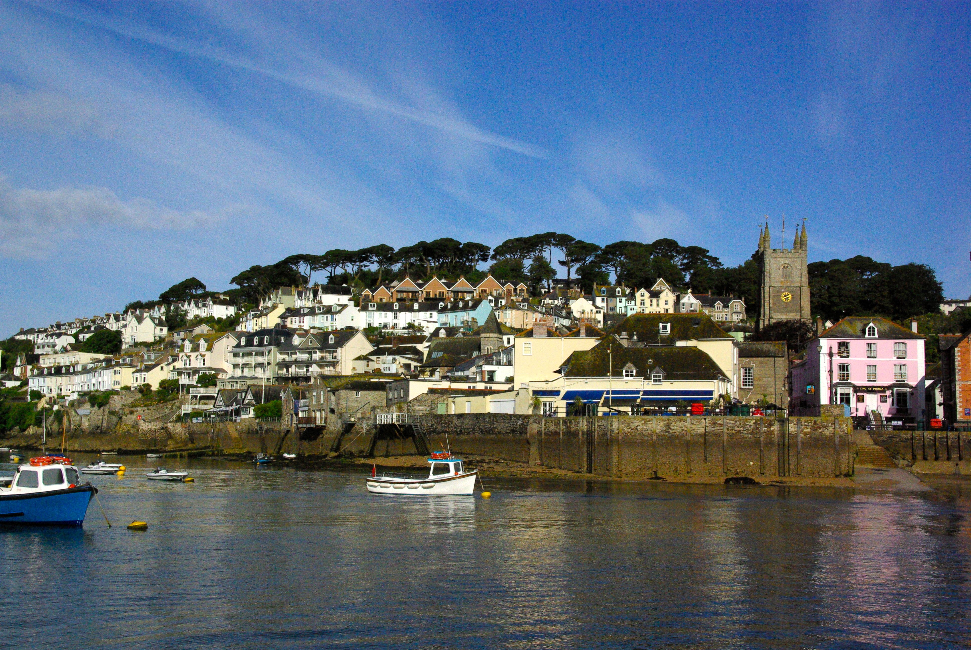 Ju längre västerut man kommer längs den engelska sydkusten desto vackrare blir landskapet. I Devon och Cornwall blir stränderna högre och landskapet mer kuperat. De flesta hamnar befinner sig i flodmynningar med vackra inlopp. Dartmouth och Fowey är verkliga pärlor i mynningen av River Dart respektive River Fowey. Sjöfarten har urgamla anor i dessa städer med väl skyddade hamnar bakom klipporna vid inloppen. Från Fowey exporteras årligen 750 000 ton porslinslera till alla världsdelar.