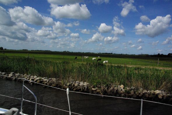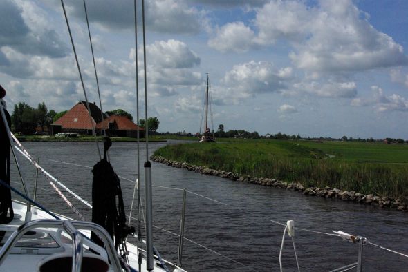 Eftersom ett nytt lågtryck med hårda sydvästliga vindar var på antågande fick de västfrisiska öarna förbli outforskade även denna gång. Vi styrde in i det nederländska kanalsystemet som gör det möjligt att ta sig framåt också då man inte vill ge sig ut på Nordsjön. För en båt som Ayfer som sticker en meter med centerbordet uppfällt är till och med de minsta kanalerna farbara, så länge de tillhör kategorin ”Staande Mastroute”, det vill säga kanaler där man kan färdas utan att fälla masten.