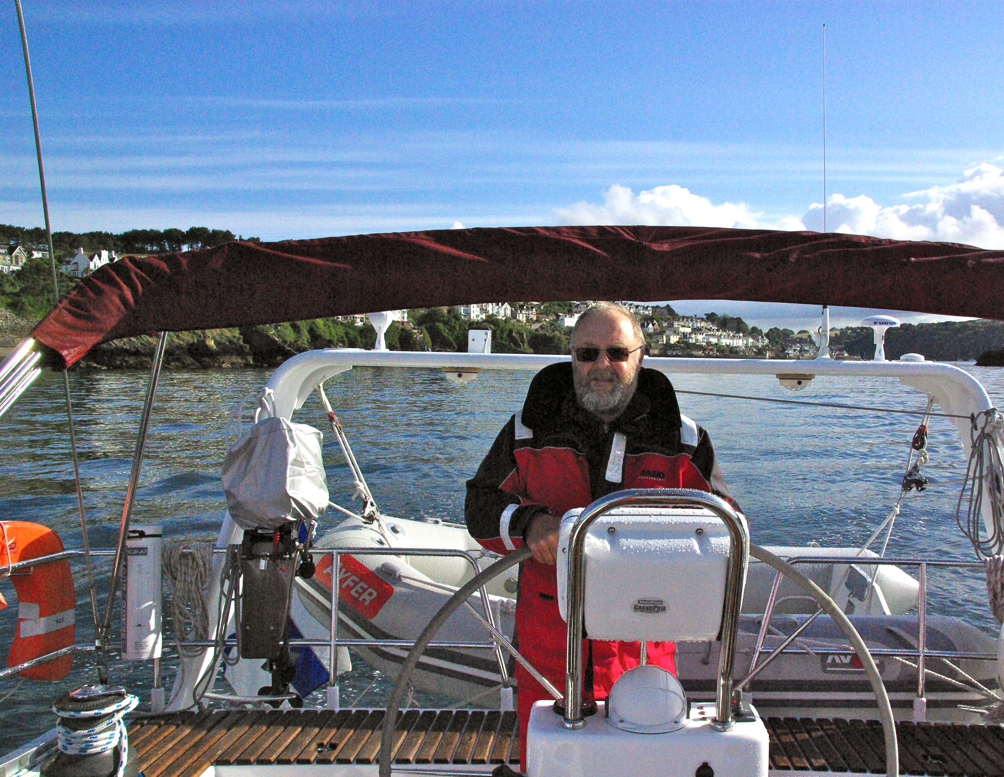 Falmouth i mynningen av River Fal är platsen där många ligger och inväntar rätt väder för att segla över Biskaja. Här inväntade även vi rätt väder, men endast för att gå över Engelska kanalen till Bretagne. Falmouth är en trivsam ort med tillgång till allt en sjöfarare behöver. Den gästhamn de flesta långseglare ligger i är anspråkslös och trivsam. I den mysiga marinboden köpte vi sol- och vindskyddande skjortor, sydda enligt modell av de kappor fiskarna fordom använde sig av.