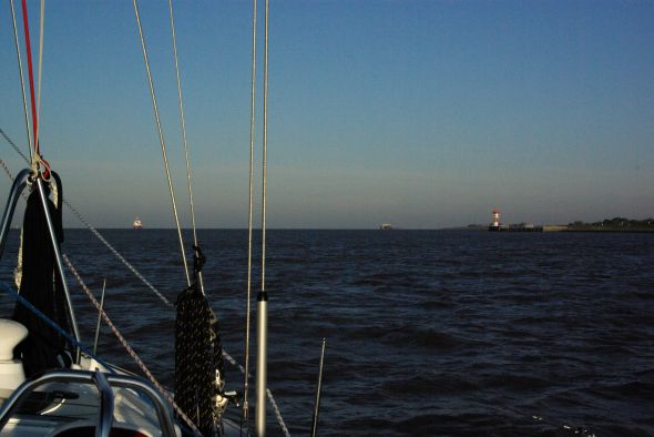 Svante har den djupaste respekt för Elbemynningen efter ett äventyr en aprilnatt 1995 med halv storm mot ström. Så dagen för passage av Kielkanalen valdes så att följande dag skulle ge möjlighet till medvind och medström på väg ut ur Elbe. Vi fick en härlig segling från Brunsbüttel till Nordernay i 5-12 m/s vind från sydost.