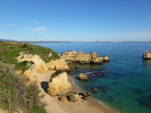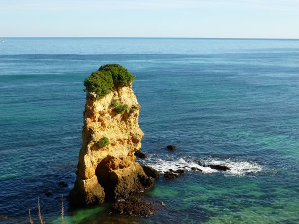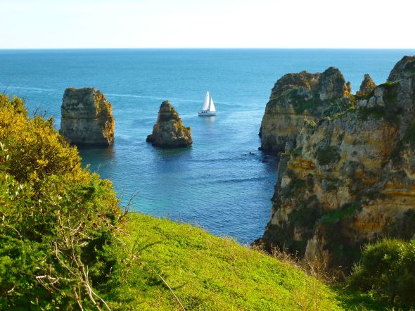 Dock är det inte för julen som Lagos och övriga Algarve är populärt bland turister, båtfolk och vinterboende ”utlänningar”. Ett behagligt klimat med stabilt väder, vacker natur med spännande inslag, vänlig befolkning och gott uteätande till billiga priser är några av framgångsfaktorerna. Bilden nedan är inte tagen ur en turistbroschyr, utan av oss själva på en av våra promenader i omgivningarna runt Lagos.