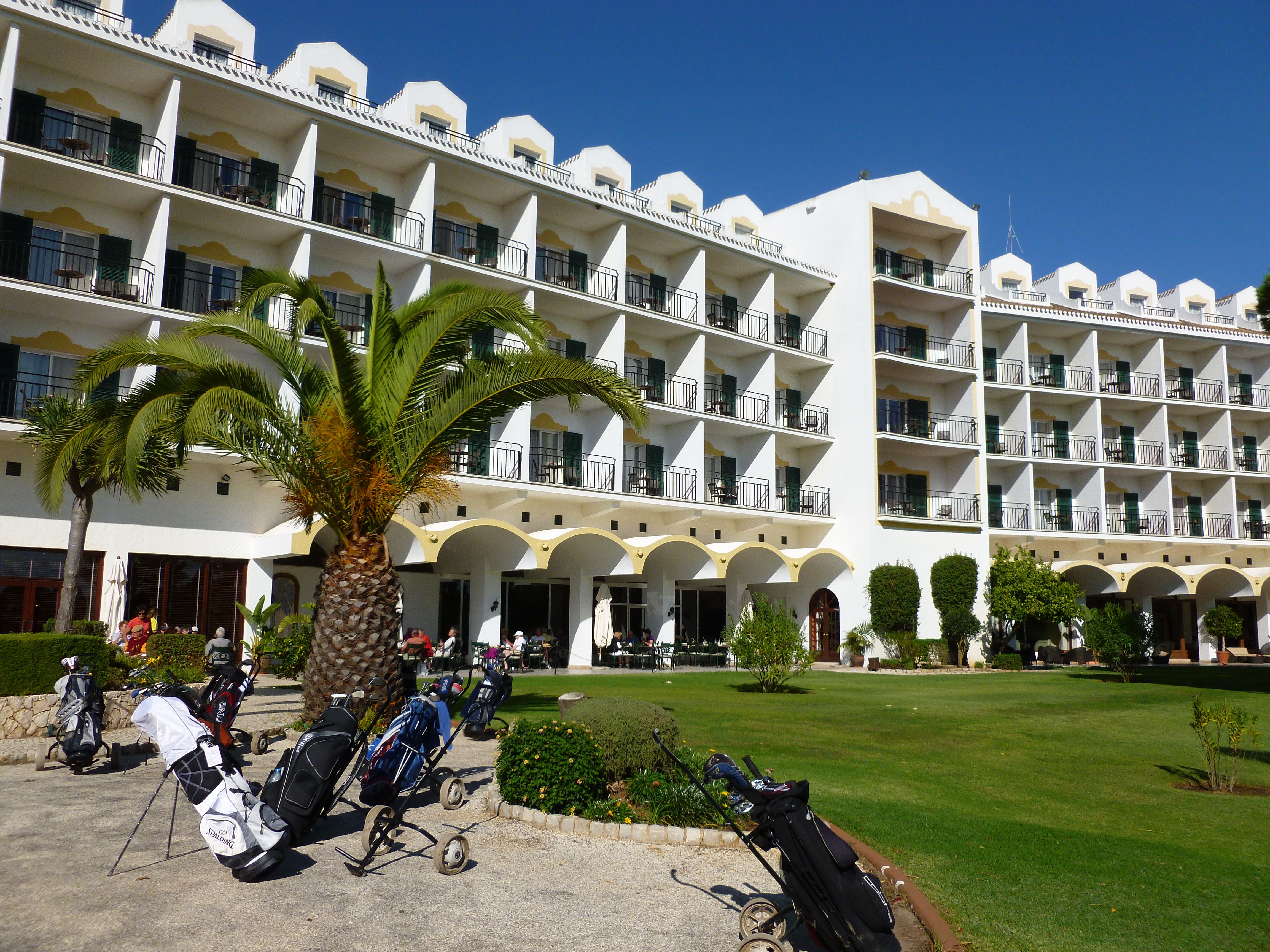I närheten av Lagos ligger ett antal fina golfbanor. Även om vi inte själva spelar golf var det roligt att i början av november slå följe med vännerna Cia och Toni från Finland och tillbringa ett par dygn på anrika Penina Golf Hotel utanför Portimao. I denna miljö kom Svantes klubbrock som hängt oanvänd i garderoben på Ayfer väl till pass!