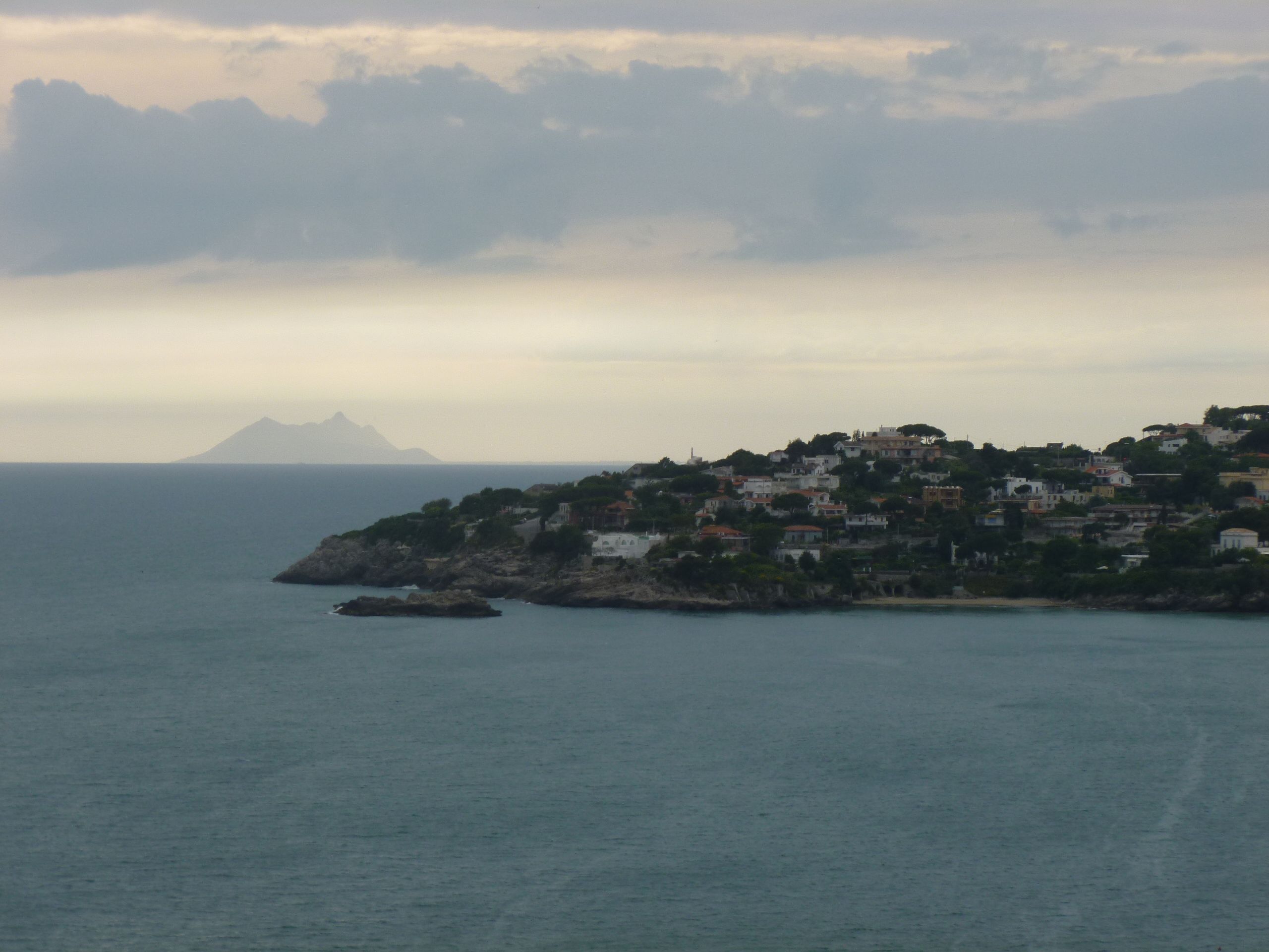 På väg till Gaeta passerar vi Capo Circeo, som syns här i bakgrunden med sin låga förbindelse med fastlandet. Tidigare var Circeo en ö, enligt vissa spekulationer Kirkes ö i Odyséen.