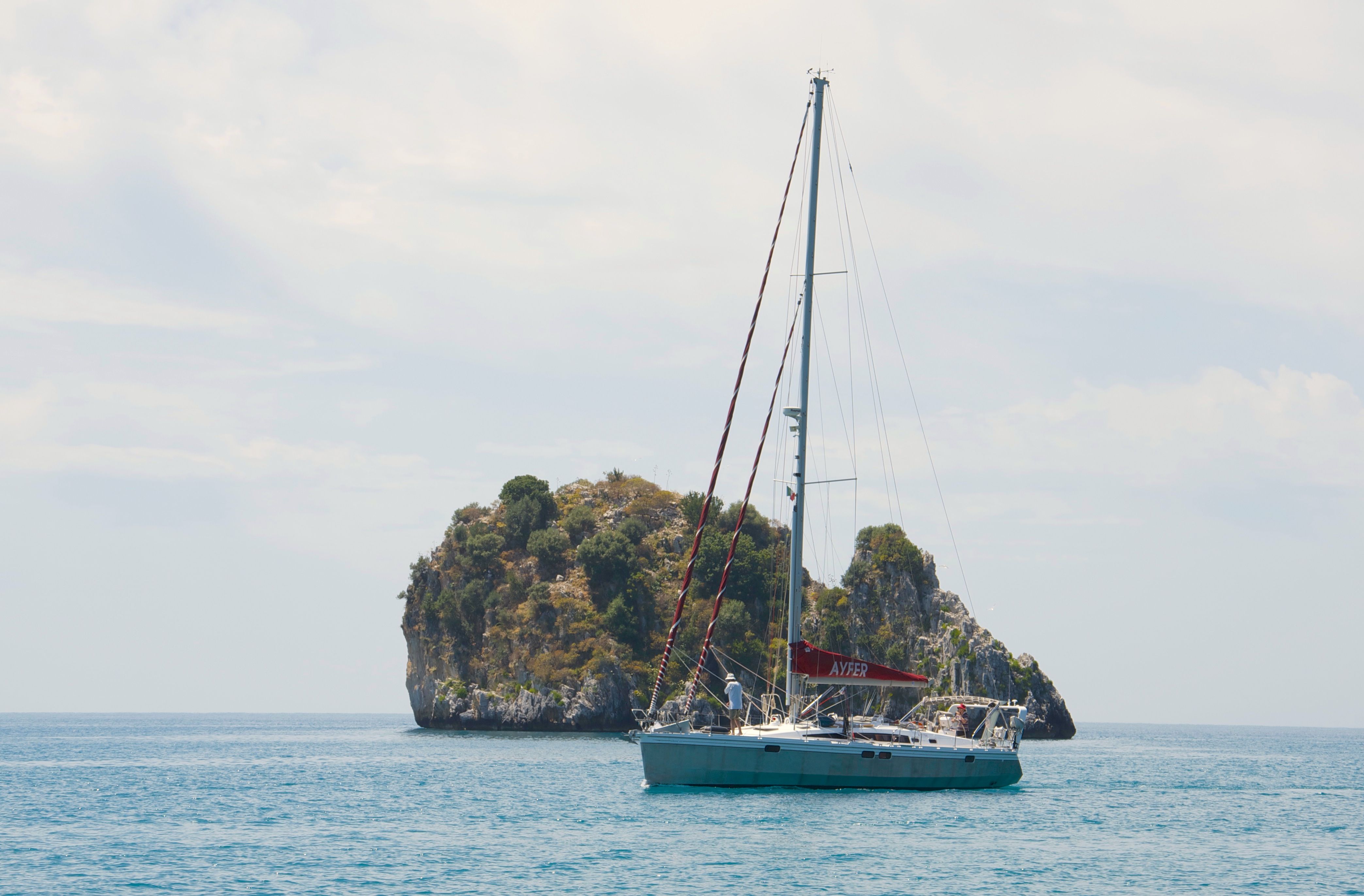 På väg till Cetraro fick vi segla på riktigt, vilket inte är vardagsmat på Medelhavet, där vindarna oftast är antingen för svaga eller för starka.