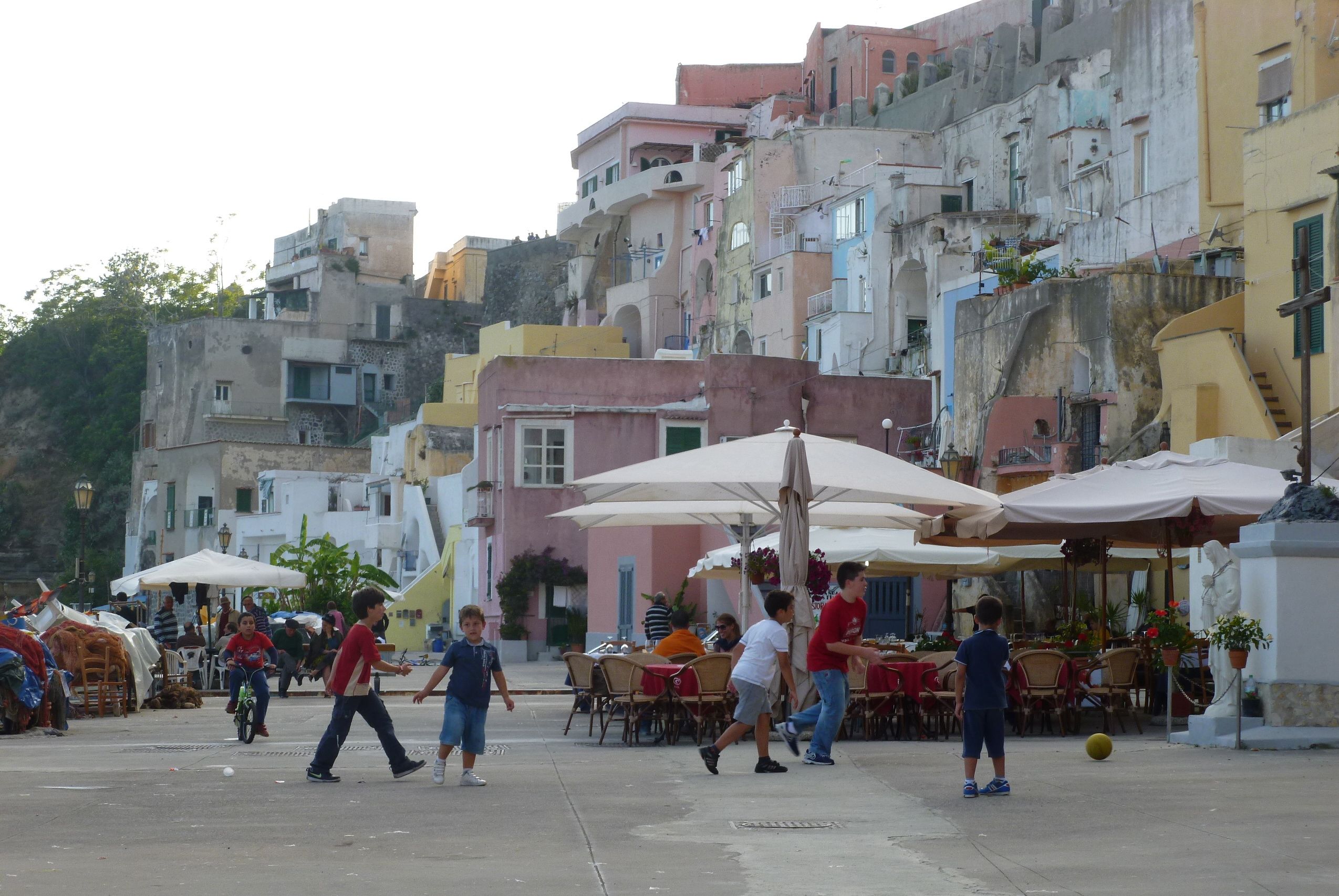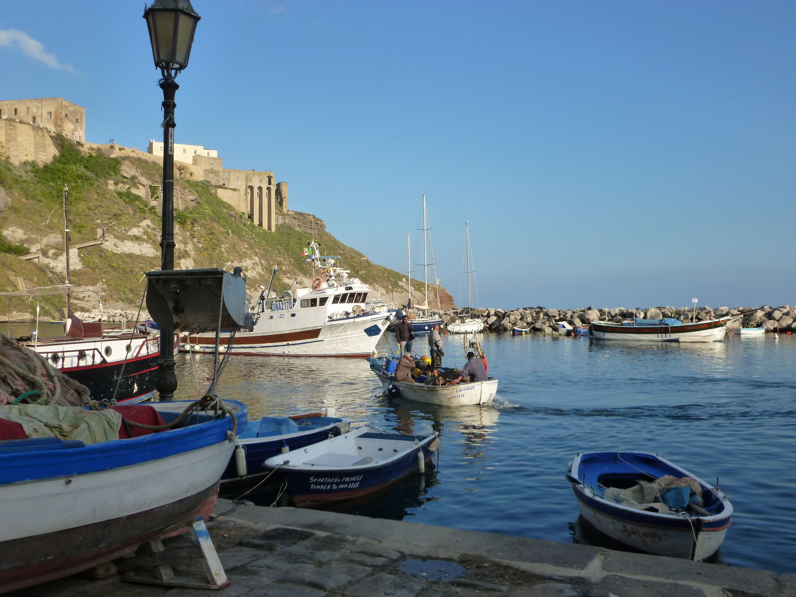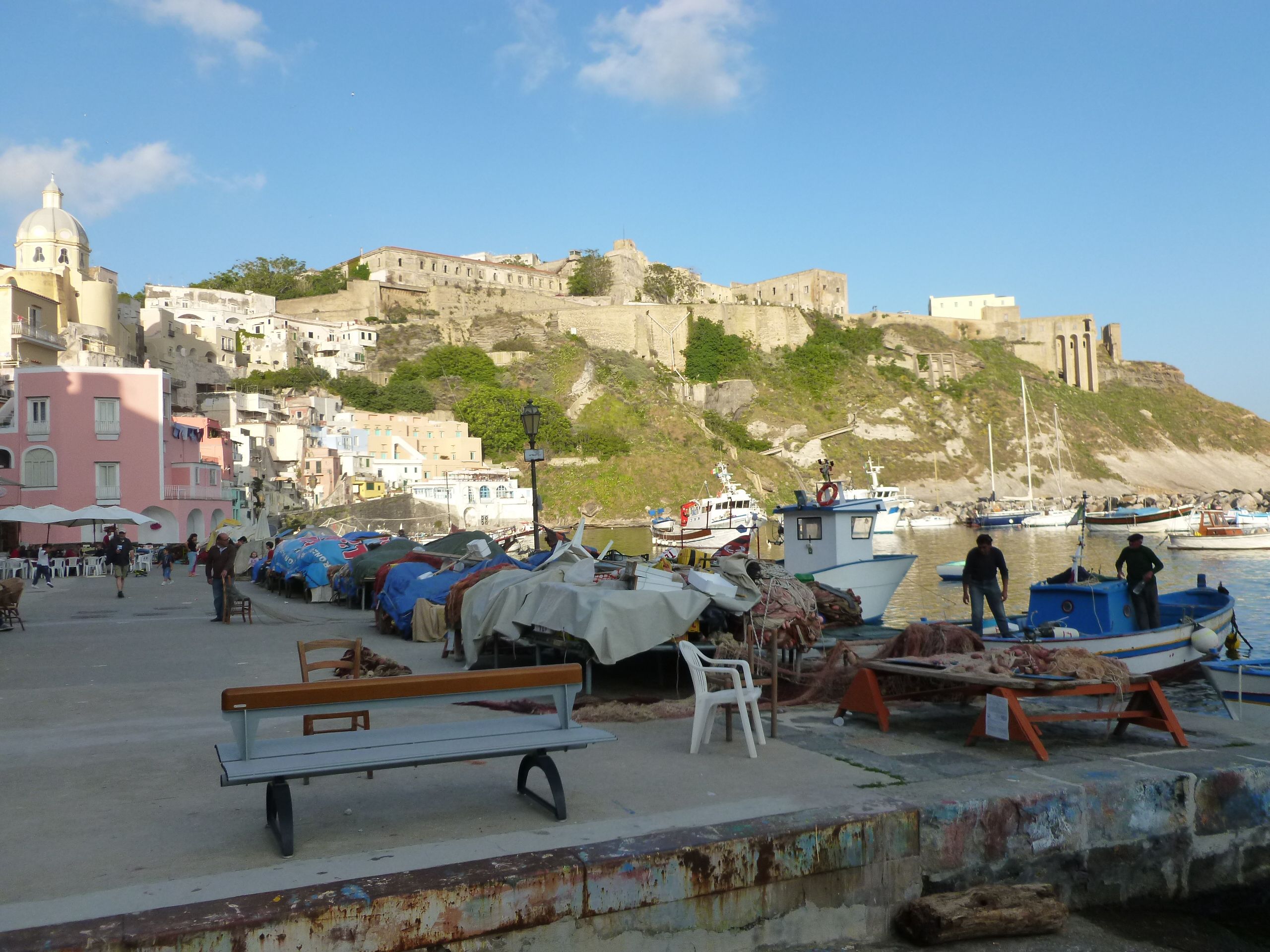 Efter Gaeta blev det dags för strandhugg på Isola di Procida – en mindre ö strax öster om den större ön Ischia på tröskeln till Neapelbukten. Vi fick en fantastisk kväll i Procida med vandring i den högt belägna gamla staden och nyfångad stekt fisk i fiskehamnen på andra sidan höjden, där även den lokala befolkningen tillbringade sin kväll.