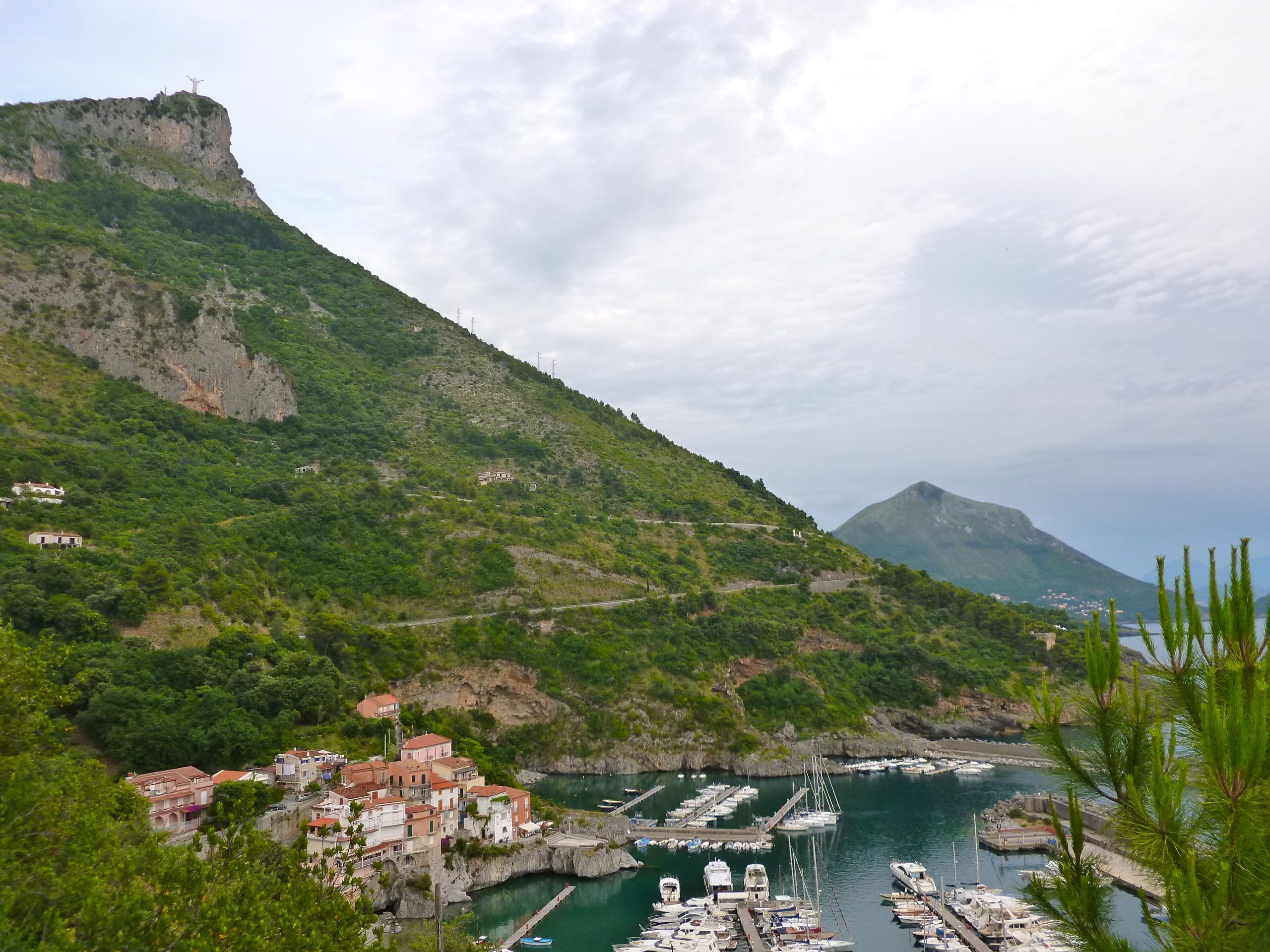 Hamnen i Maratea var suverän. Kristusstatyn välkomnade på långt håll där den står på bergstoppen invid hamnen. Hamnpersonalen välkomnade på nära håll på bryggnocken och hjälpte in till en plats på de fina flytbryggorna. I Maratea bokade vi bord med utsikt över hela den vackra hamnen och åt en trevlig middag tillsammans med besättningarna på de två norska båtar som vi följts åt med ett tag.
