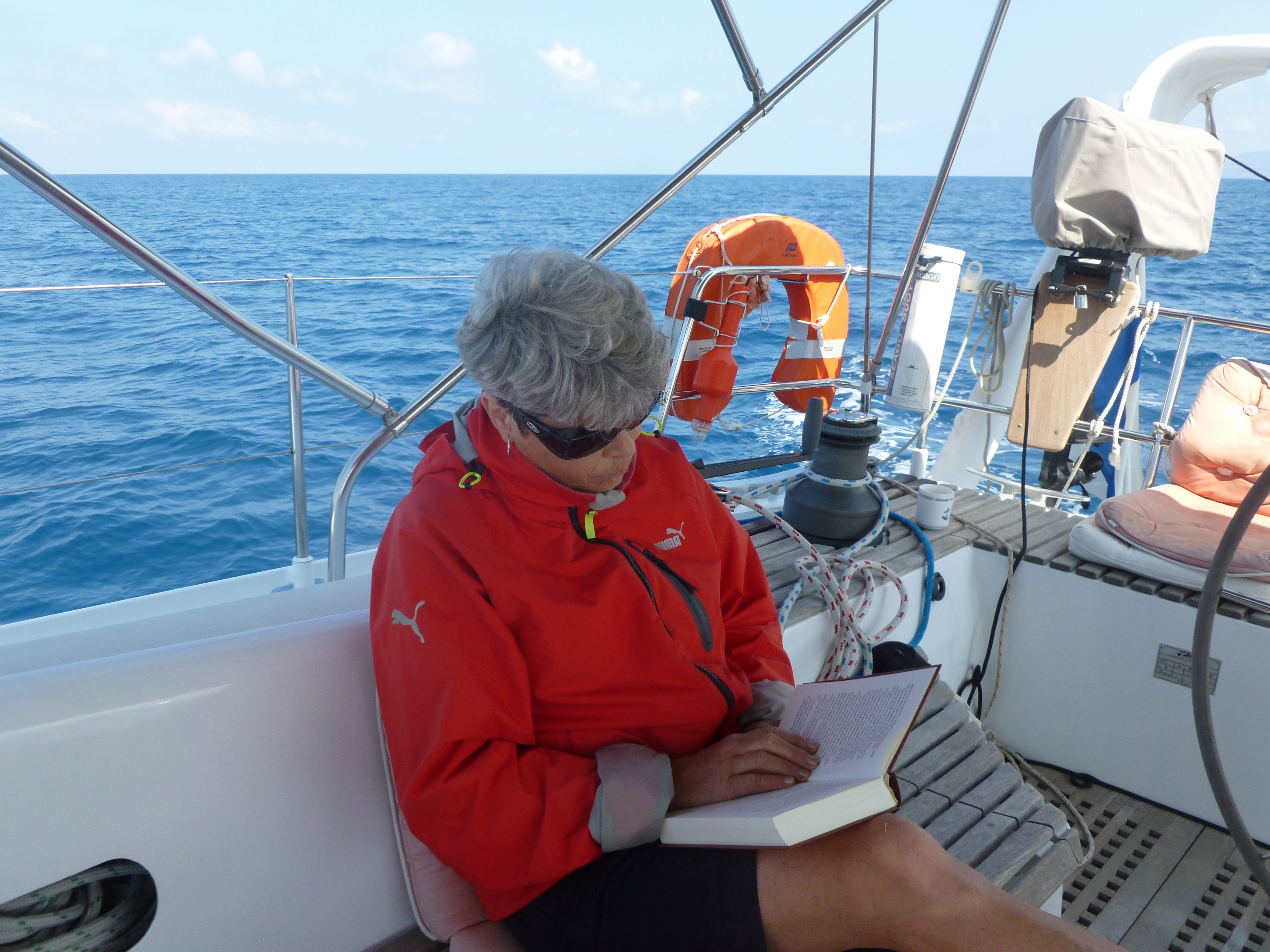 Vi blev kvar fem dagar i Gaeta och firade en av kvällarna vår 33-års bröllopsdag med en välsmakande middag i sittbrunnen i hattlampans sken. Det sägs att den bäst fungerande besättningen på en långfärdsbåt är ett gift par. Må så vara – i varje fall är det den vanligast förekommande besättningen på de båtar som vi möter i hamnarna. Ofta blir det tal om dynamiken ombord och då visar det sig i allmänhet att det är ganska lika på de flesta båtar, både vad gäller rollfördelning och dynamik. Och att det fungerar rätt bra, för annars skulle man väl inte fortsätta segla tillsammans år efter år. Men visst ställer det en del krav då man lever tillsammans 24/7 på ett begränsat utrymme i ständigt skiftande miljöer och förhållanden.