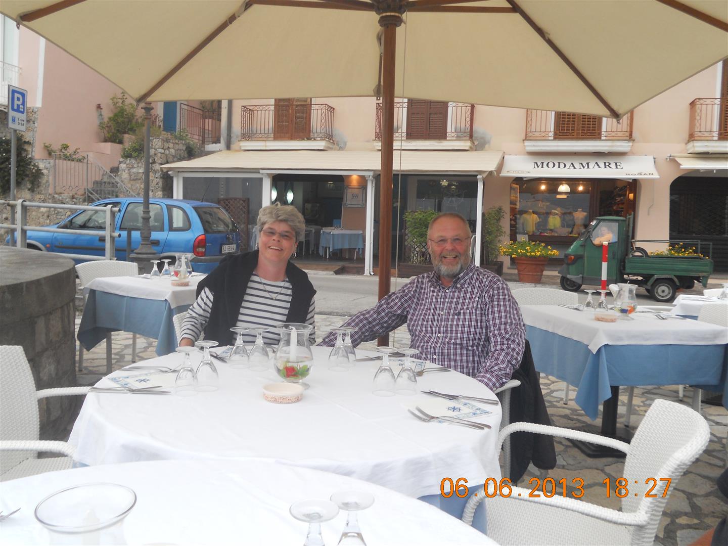 Nina och Svante väntar att Anne-Lise och Per från Midi och Lynette och Nils från Bilitis ska slå sig ned för gemensam middag i Maratea. Foto: Lynette Walle