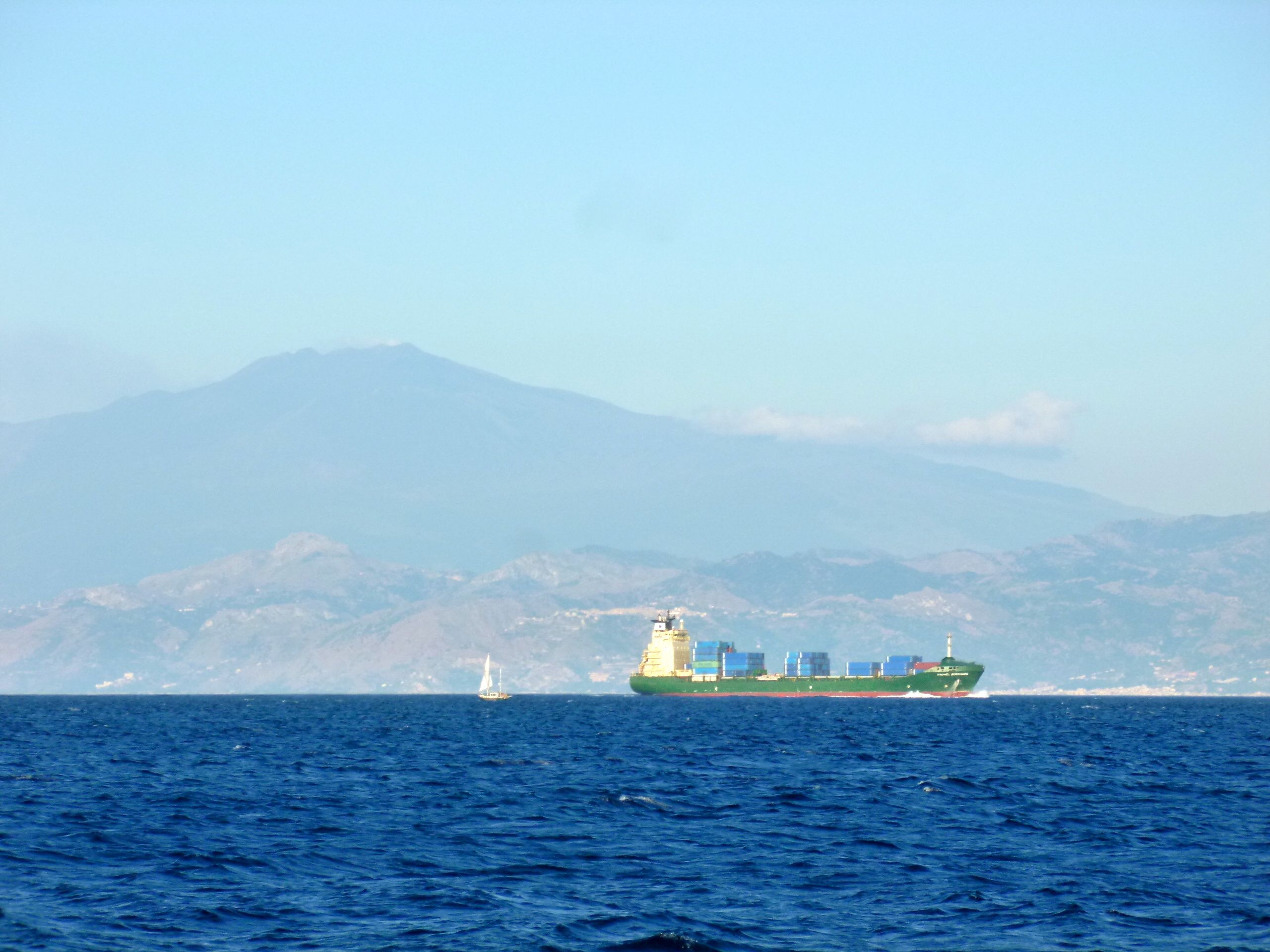 Då vi tillsammans med de norska båtarna Midi och Bilitis lämnade Reggio di Calabria tidigt om morgonen den 14 juni kunde vi hissa seglen utanför hamnen och länsa söderut för en frisk vind från NNW. På styrbords sida av Messinasundet, det vill säga den sicilianska, tonade Etna småningom fram ur morgondiset. Men säg den seglingsglädje som varar länge på Medelhavet. Redan långt innan vi rundade underkanten av den italienska tåspetsen hade vinden dött ut och plåtgenuan fått rycka in. Alltför väl förstår vi de engelsmän som döpt om the Mediterranean Sea till ”the Motorreanean Sea”.